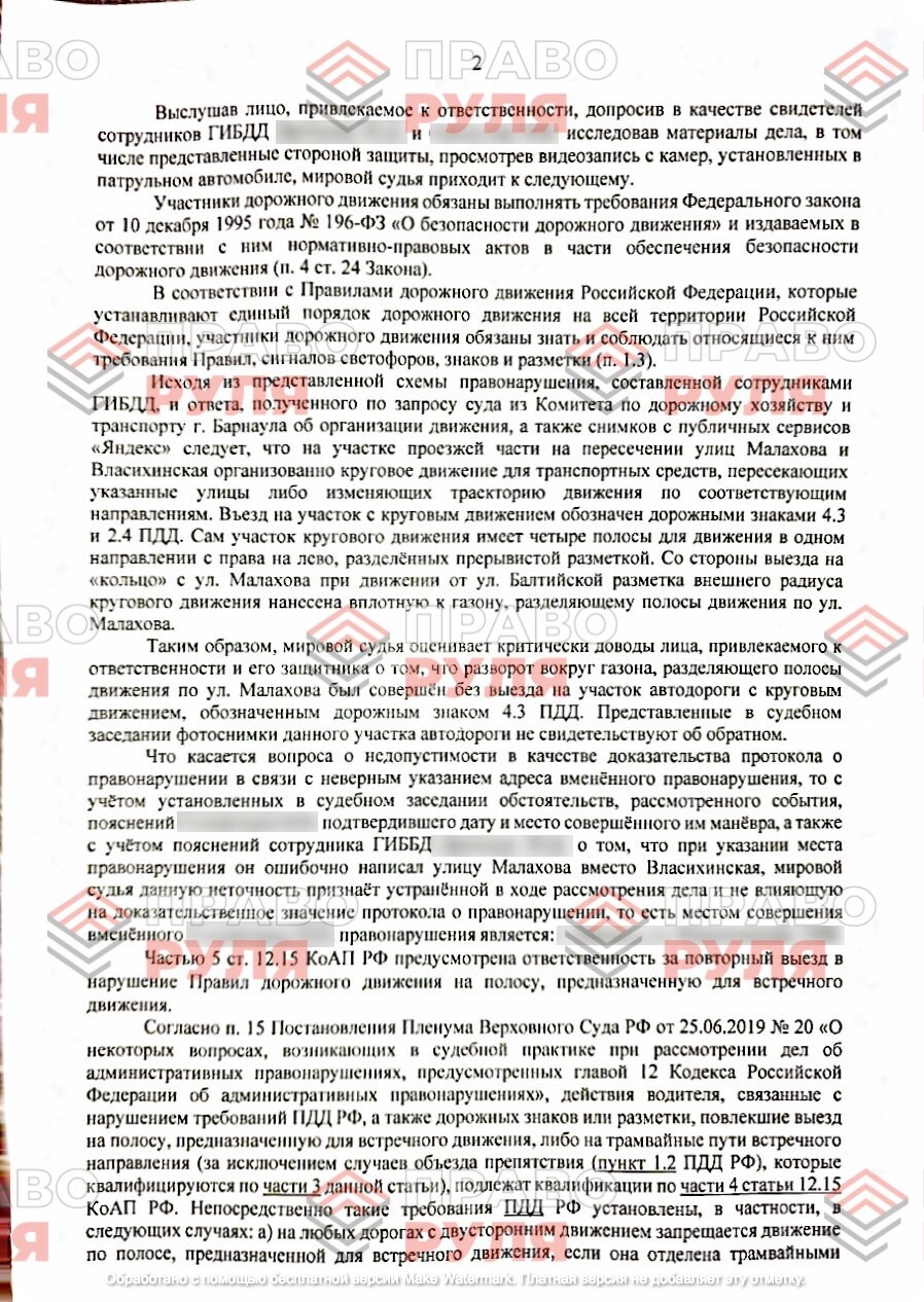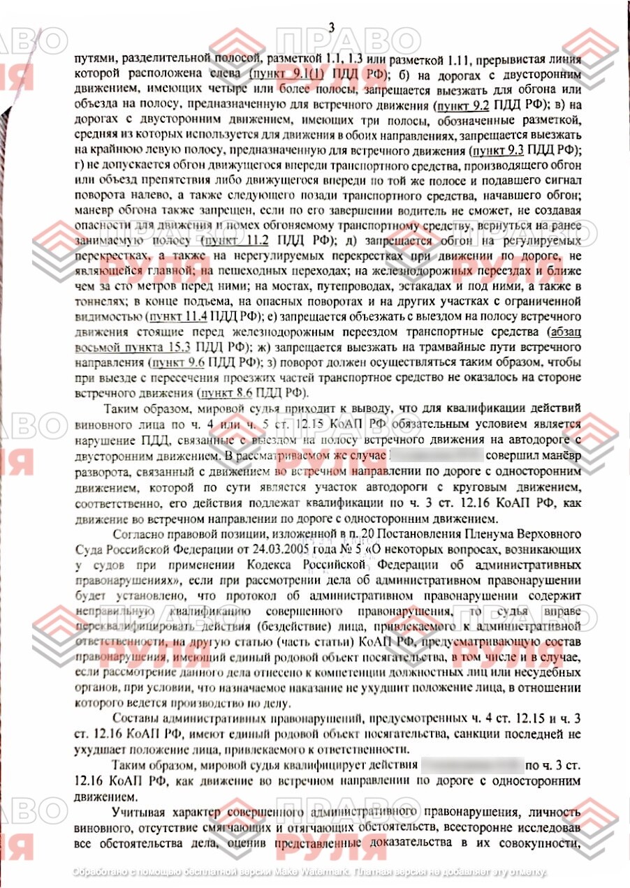 Клиент обратился 19 января 2024 года в нашу компанию. Клиенту грозил год лишения водительских прав за повторный выезд на встречную полосу. Юристом был подготовлен правовой анализ и найдены грубые нарушения в квалификации правонарушения. В судебном процессе дело было переквалифицировано на более мягкую статью с решением суда о присуждении штрафа в 1000 руб. Подробнее: в тексте решения.